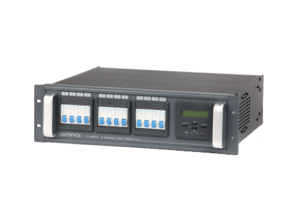 LT-1203DA 12路數字調光器。可裝置于19”規范機柜和航空箱,3U機箱設想,合用于小型演播廳,中小型文娛場合及修建照明,也可作為活動裝備。MCB過載掩護,外部設有智能溫控電扇,每路可設為可控縱貫,4條調光曲線可供挑選,前面板可選多種插座情勢。