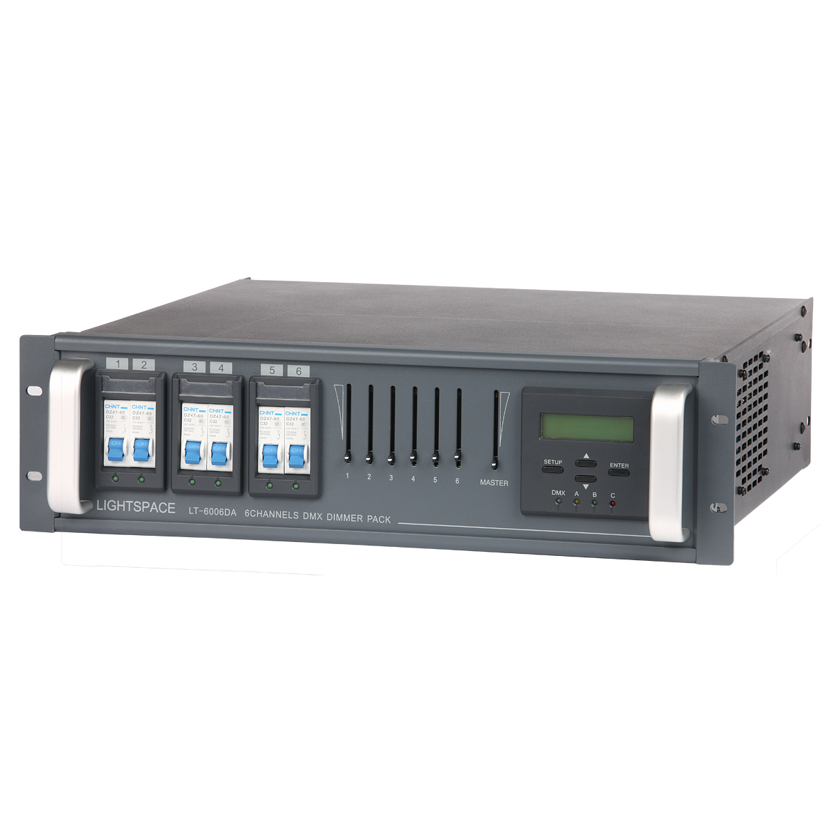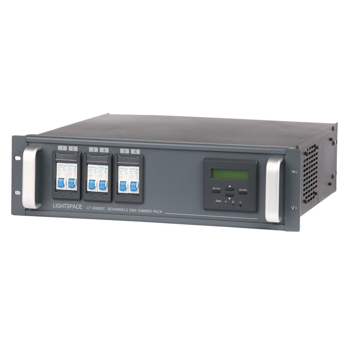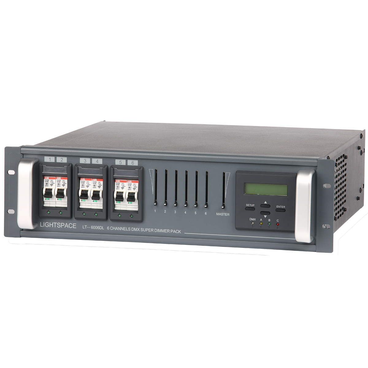 LT-6006DL 6路數字調光器。可裝置于19”規范機柜和航空箱,3U機箱設想,合用作為活動裝備,小型演播廳,中小型文娛場合,及修建照明。每路設有電位器可自力利用和操縱,高速MCB及大功率可控硅,可有效掩護短路引發的可控硅擊穿。調光器內設有智能溫控電扇散熱節制,每路可設為可控縱貫,有4條調光曲線可供挑選,前面板可選多種插座情勢。